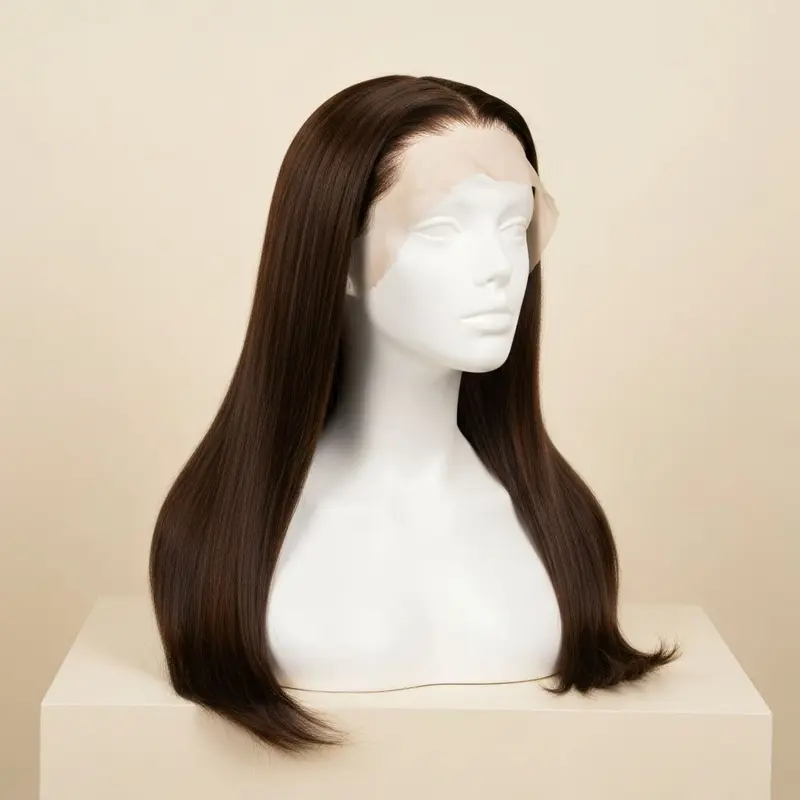A premium, high-density straight wig showing off a perfectly pre-plucked HD lace frontal on a mannequin base.